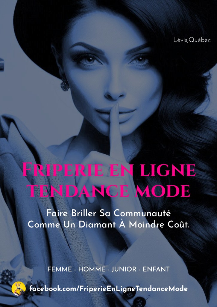 Lévis,QC G6J 1V5.© 2026 Friperie En Ligne Tendance Mode Concept. Tous droits réservés pour tous les pays. Les idées,textes, images, graphismes, logos et autres contenus présents sur ce site, sur notre page Facebook et autres supports numériques de Friperie En Ligne Tendance Mode sont protégés par les lois sur le droit d’auteur et la propriété intellectuelle. Toute reproduction, distribution, modification ou utilisation de ces éléments sans autorisation préalable écrite de Friperie En Ligne Tendance Mode est strictement interdite et passible de poursuites légales.