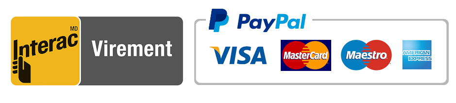 Vous pouvez payer vos achats en toute sécurité par Virement Interac ou par Carte de crédit, sans aucuns frais supplémentaires.